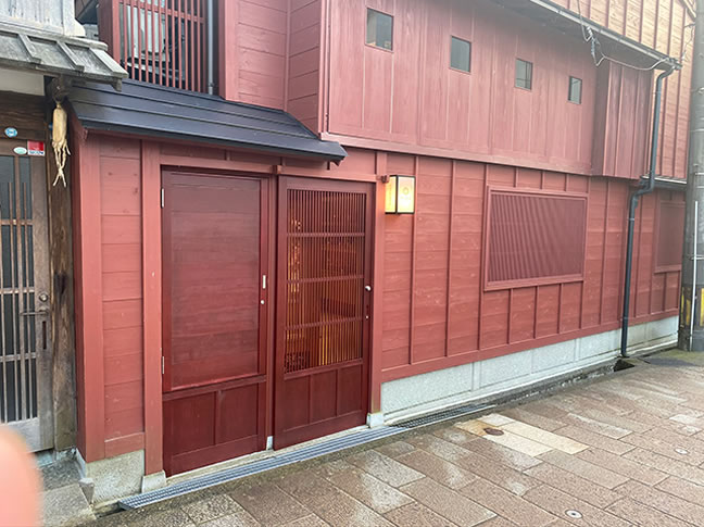美しい弁柄に塗られた外観。茶屋街全体の景観の向上に役立っています