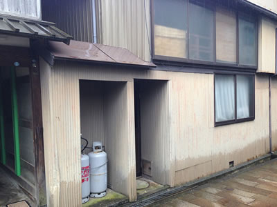 建物はずいぶん老朽化し、傾きもひどく、ボールを置くとすぐに転がってしまうほどでした。時代を経た建物の中には、現代の基準で見ると、驚くほど基礎が弱いものが少なくありません。特に、ここは角地です。ひがし茶屋街の建物は、すべてつながっており、互いに支えあう構造になっています。角にある建物には、常に一方からの圧力があり、もう一方には支えになるような建物もないため、傾きやすいのです。