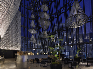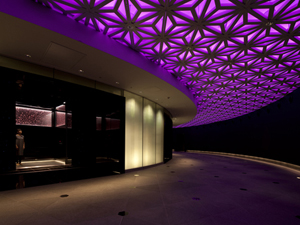 「東急プラザ銀座」は伝統工芸である江戸切子をモチーフに「光の器」というコンセプトでデザインされた新しい銀座のランドマークです。商環境デザインは株式会社インフィクスが手掛け、本物志向の空間に仕上げるという想いで箔一の箔加飾技術を採用していただきました。