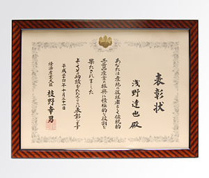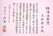株式会社箔一 代表取締役会長 浅野邦子が「職業能力開発行政関係功労者 厚生労働大臣表彰」を受賞しました。 この受賞は、労働者の能力向上や就職支援といった政策への貢献が認められた人に 贈られるもので、浅野は1996年より石川県職業能力開発審議会委員を務め、職業能力 開発計画の作成に携わるなど、職業能力開発行政の発展に貢献した功績が認められました。