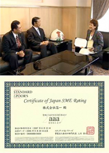平成19年6月13日(水)に、米大手格付け会社スタンダード・アンド・プアーズから日本SME格付け"aaa(トリプルエー)"を取得。 北陸の中小企業にも、債務の支払い能力を示す「信用格付け」を取得する動きが広がっており、中堅・中小企業向け格付けの最高位"aaa(トリプルエー)"を取得し、石川県内では2社目となります。