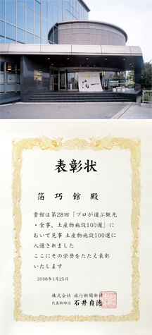 旅行新聞新社が主催する第28回「プロが選ぶ観光・食事、土産物施設100選」に箔巧館が選ばれました。
