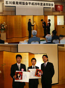 2010年5月28日(金)ホテル日航金沢で行われた、石川県発明協会の平成22年度石川県職域創意工夫功労者表彰にて、「新名科学技術振興賞」を受賞いたしました。