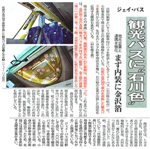 箔一は、金沢箔で車内を装飾した高級感漂う観光バスをジェイ・バスと共同で企画し、箔一が製作。車内には、本金箔や本銀箔をベースに友禅柄をイメージした桜をあしらった天井や、蒔絵風の桜のデザインを施した窓柱など、独自の箔加工技術を駆使し金沢らしい雅やかな装いを凝らしました。