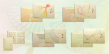 デザインは、フレーム全体をいぶした色合いの金箔で覆った「金箔」、漆黒のフレーム上に金箔と金粉を施したタイプの「切り金箔」、ぬくもりある優しい色合いの銀箔をあしらった「桜」の3種。箔職人の手貼り加工技術を施した優美なフレームがインテリアの新たな演出を実現いたします。