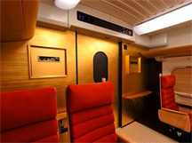 日本らしさ、九州らしさにこだわった内装には、荷棚やテーブル、窓台に本物の木をふんだんに使用し、車両ごとにそれぞれ異なる座席のデザインが採用されています。そして、各車両の妻壁に、箔一が金箔で装飾を施し、額縁を設けて車両ごとに異なる九州の工芸品が飾られています。九州の工芸品が中心に採用されている中、日本らしさの象徴として、「金沢箔」が鮮やかに各車両を彩っています。今後は2010年春から秋にかけて2編成が追加される予定で、いずれも箔一の金箔が採用されています。