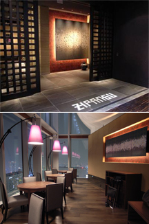 2008年10月3日、なだ万は、大阪・梅田のブリーゼブリーゼ33Fに関西初となる、「ジパング」ブランドレストラン『ZIPANGU by NADAMAN ブリーゼブリーゼ店』をオープンさせました。箔一は、エントランスとダイニング席近くに金属(ステンレス)をベースとした箔加工の壁面装飾を完成させました。
