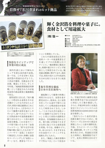 金箔を使った食品加工向けに本格参入のため、食品加工向けの新工場を建設。食品加工ではISOを取得しているが、さらに厳格な衛生管理法のHACCPに対応した食品の製造ラインを設けた新工場では製菓会社、食品卸問屋などと連携し、幅広い加工食品や調味料などに、金箔を加え「見た目の付加価値を付けた製品」を生産。