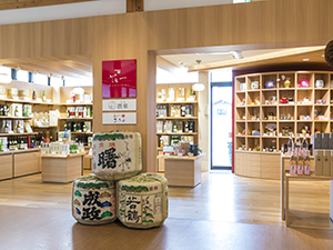 伝統工芸と、石川県のお酒が楽しめるお店「ひがしやま酒楽(しゅらく)」をプロデュースしました。店内は立ち飲み形式で、一杯500円から味わうことができ、気に入ったお酒を銘酒100種の中から購入して持ち帰る事も可能です。