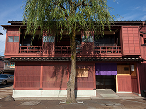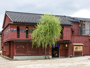 金沢を代表する観光地、ひがし茶屋街に位置する店舗では、人間国宝や伝統工芸作家の作品を手にとって見ることができます。二階の茶房やなぎ庵では、シンボルとなる柳の木を見ながらゆったりとした時間を過ごすことができます。