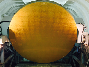 国立天文台野辺山宇宙電波観測所における、電波望遠鏡の反射鏡に金箔の施工をしました。劣化の激しかった45m電波望遠鏡内の反射鏡に金澄(厚めの金箔)を貼り、反射効率を約15%向上させることに貢献しました。性能が向上した電波望遠鏡は、2015年12月1日より本格的な観測を開始しています。