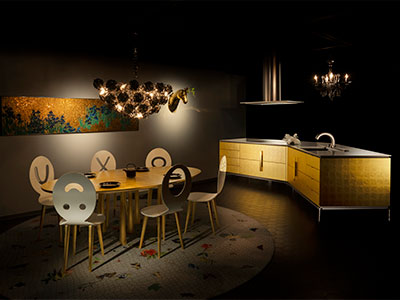 株式会社トーヨーキッチンスタイルとのコラボレーションにより、金箔を贅沢に纏ったキッチンが発売。同社より発表された「SPIGA TRE | スピーガトレ」コレクションでは、世界各国の卓越した職人技の競演をキッチンのマテリアルに落とし込んだ6種となり、箔一の金箔を纏ったキッチンはその一つ。