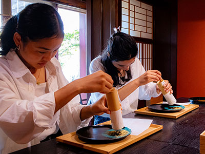 国内外のお客様に向けて、伝統の技と文化をより深く体感できるプレミアムな体験をスタートしました。築200年の茶屋建築である「金澤しつらえ」で、茶屋文化と歴史を知って楽しむ「金箔工芸体験」となっています。