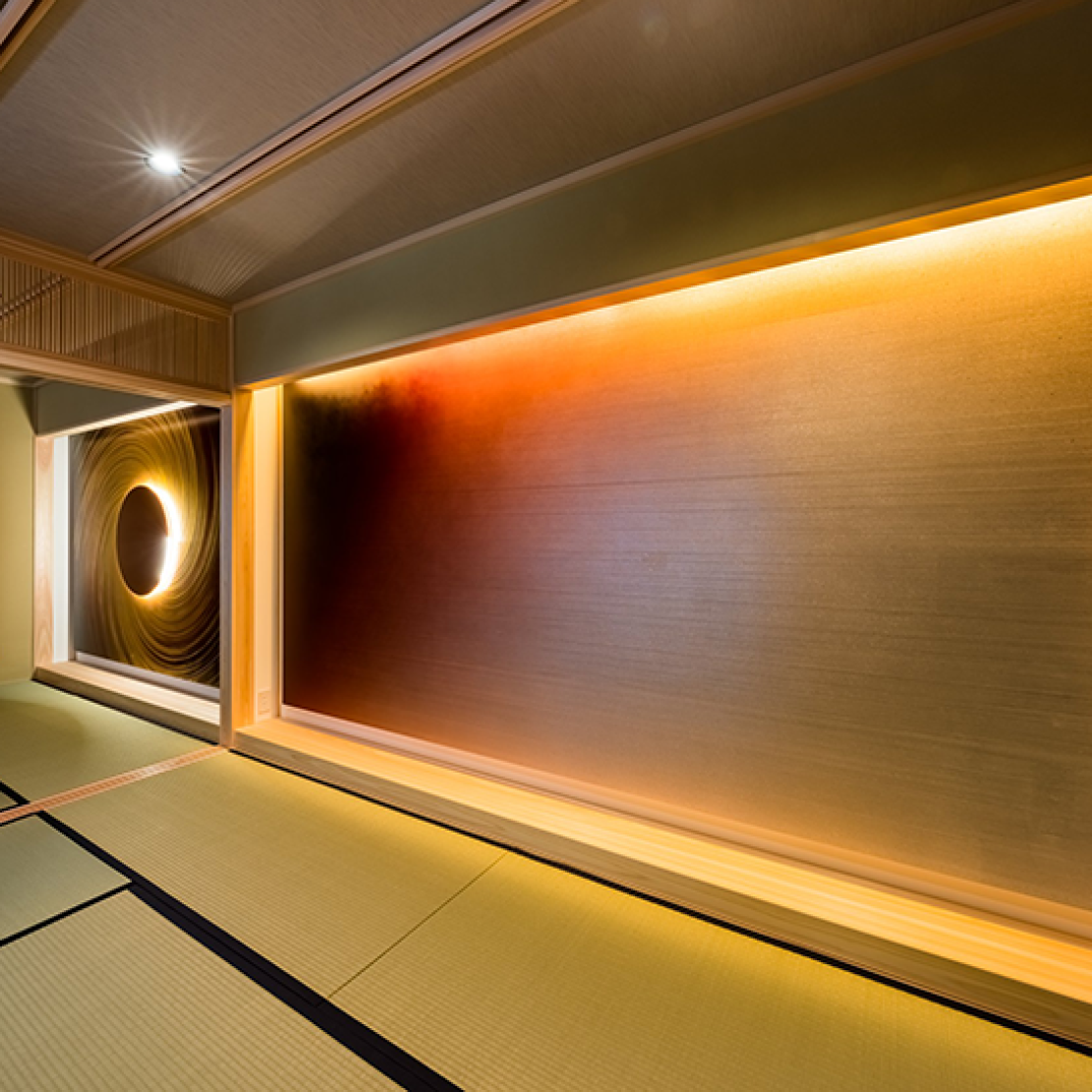 金沢箔に、微細な穴を無数にメッシュ状に開け、光を透過させることでこれまでになかった金沢箔の表現を生み出しました。400年以上にわたる金沢箔の歴史において、誰も見たことがなかった箔と透過光の新しい関係の発明です。