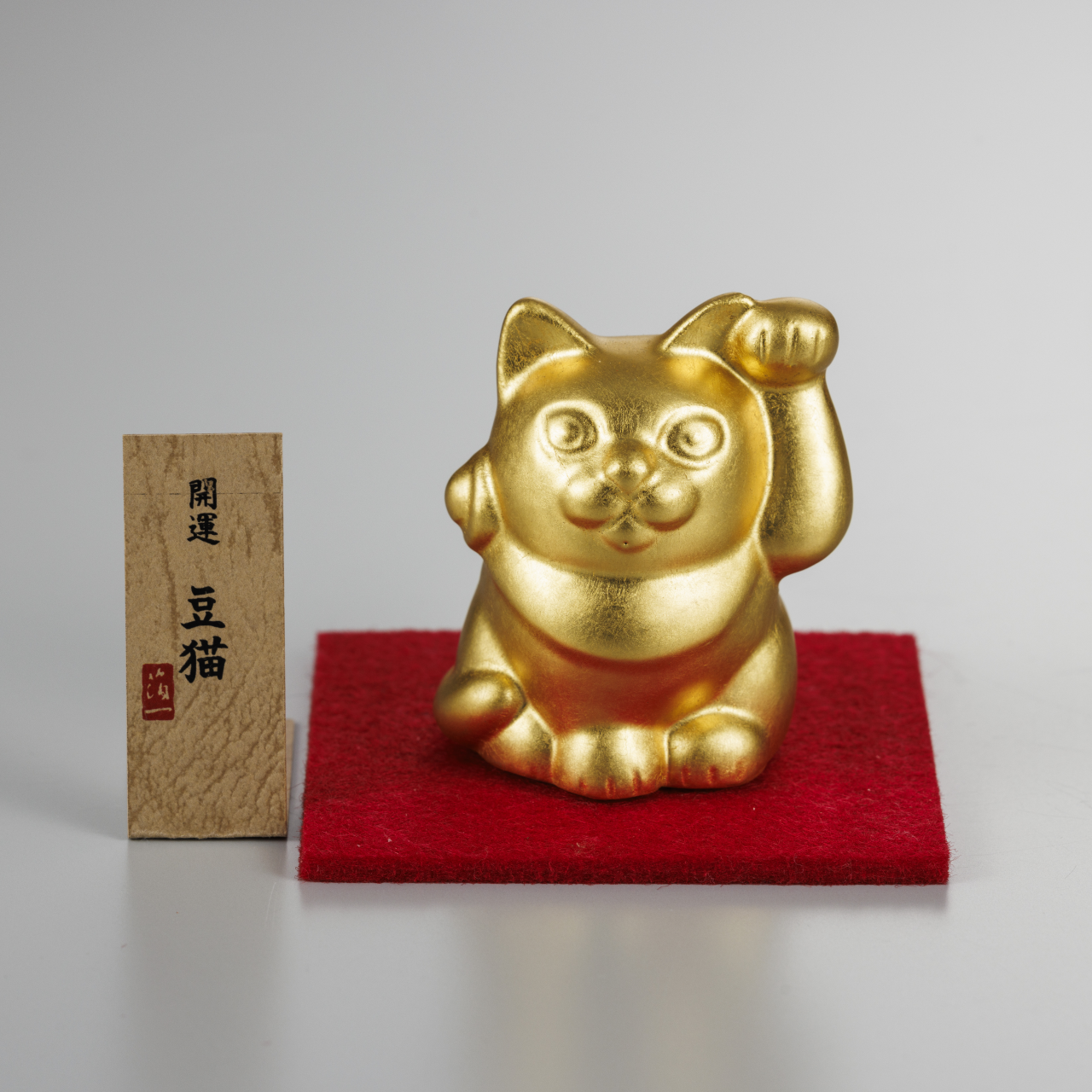 夜目の効く猫は、家を守る魔除けのシンボル。左手を上げ、良縁を招き入れます。