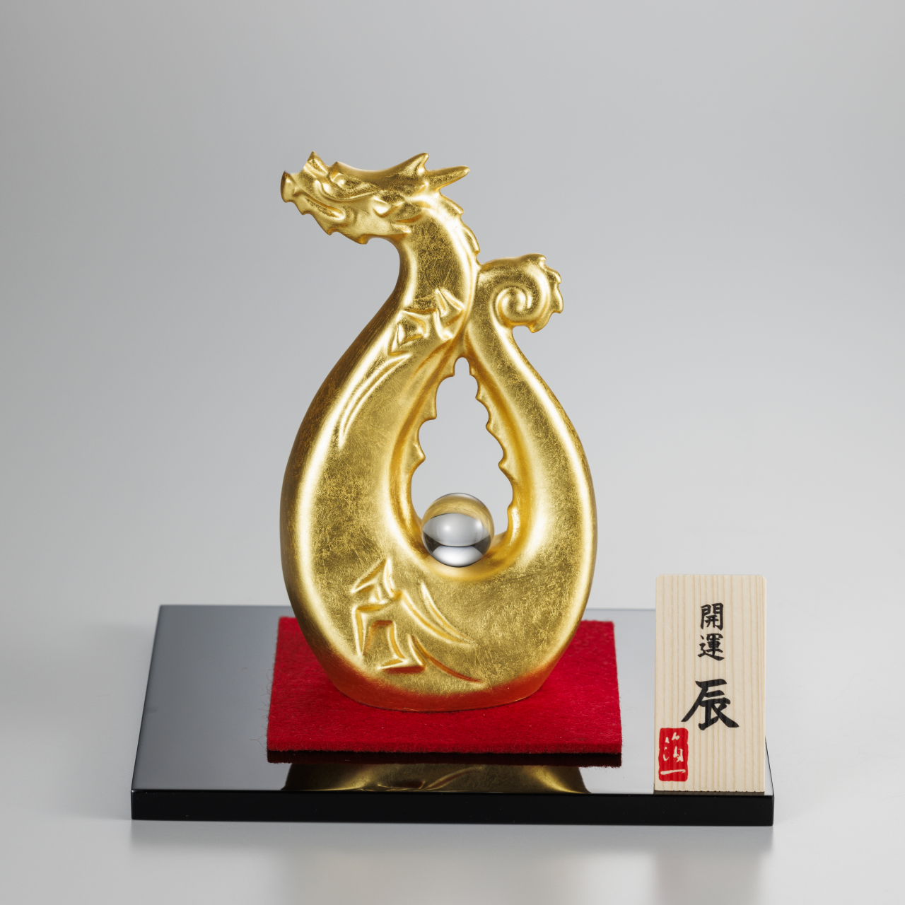 優美な曲線の辰(龍)は、富と幸福をもたらすとされる干支です。中央の水晶玉は、願いを叶えるという如意宝珠です。迎春に新しい干支の置物をお求めになる方、縁起の大切な自営業の方、中国のお客様など風水を好まれる方にぴったりです。
