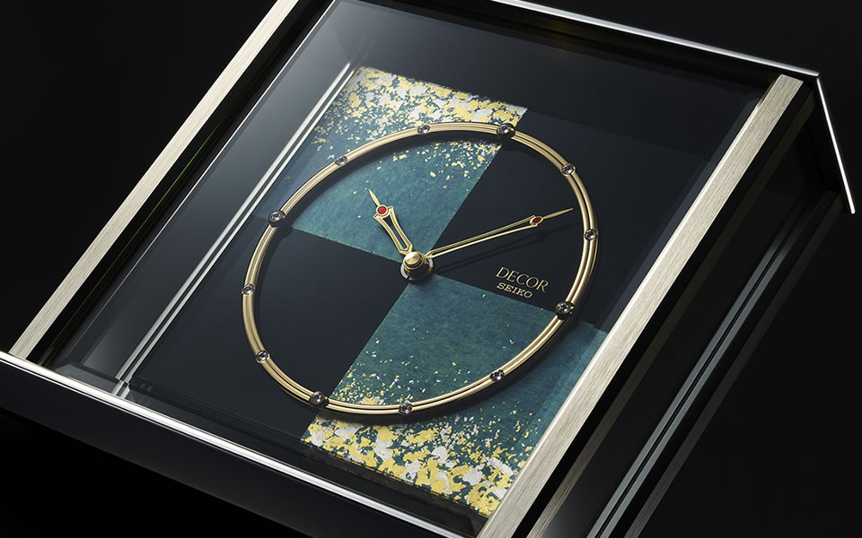 デコールはセイコークロックの最高級ブランドです。知的で精悍なフォルムに、雅でたおやかな日本の伝統日を融合させた和モダンをコンセプトにデザインされました。