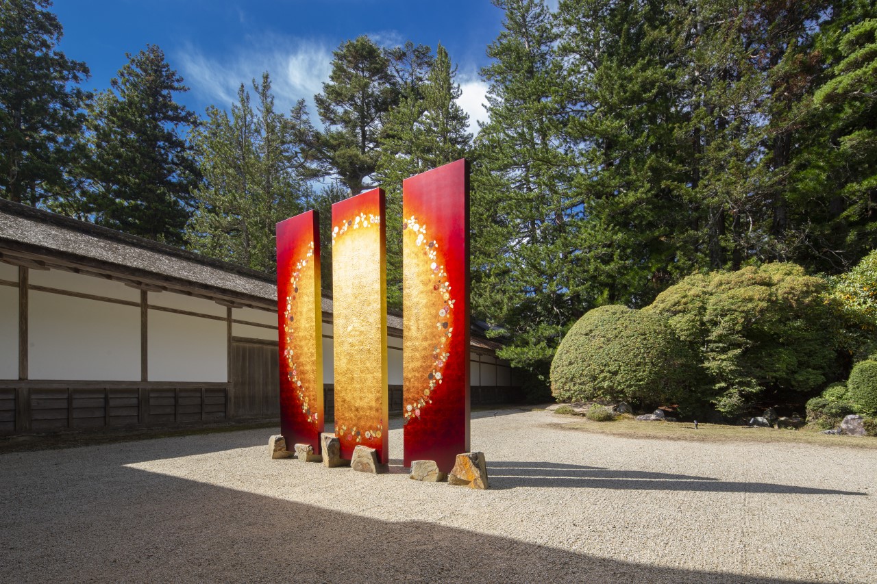 2023年は弘法大師空海御誕生1250年の節目となります。これを記念し、高野山で「高野山アートデイズ」が開催されました。聖地高野山を芸術という切り口で見つめることをコンセプトに、歴史ある仏教美術と現代アートが並んで展示されました。ここに、現代アーティストの吉本英樹氏の作品「Rose」が展示されることになり、その制作に協力をいたしました。