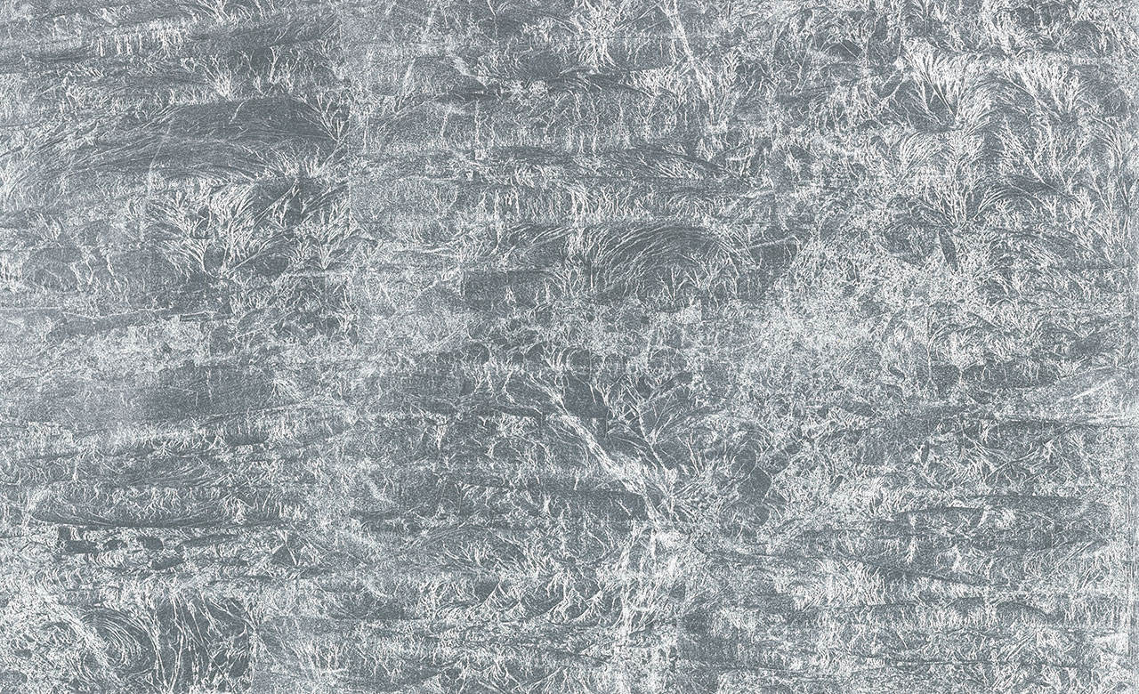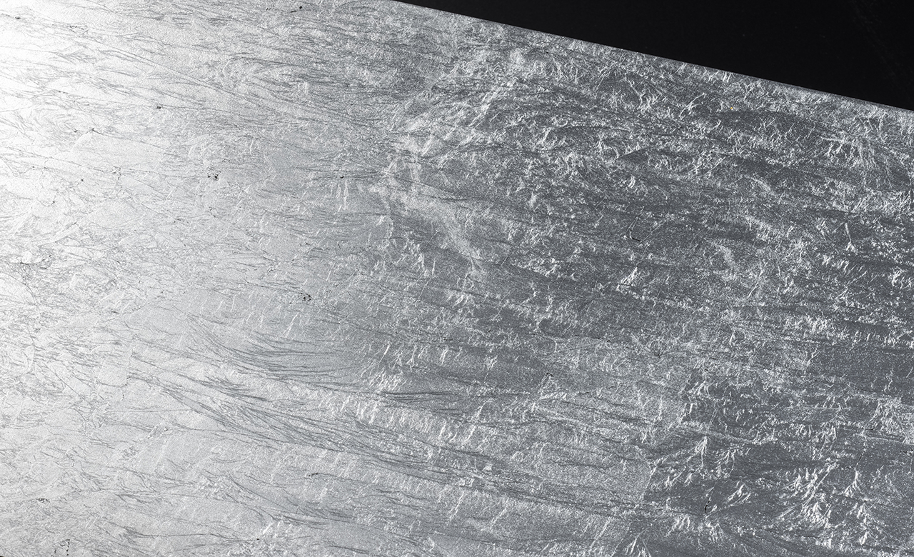 箔の煌めきをより一層美しく表現するため、箔独特のシワ感を活かしたテクスチャーに仕上げています。箔にあたる光の変化に伴ってキラキラと反射し、華やかな表情を創り出します。