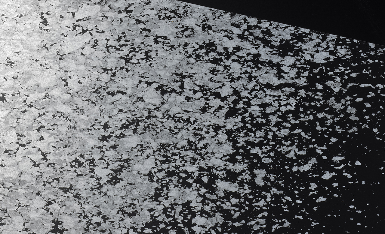 箔を散らす技法を用いて、美しいグラデーションを表現しています。箔を散らす大きさや密度や、箔種の組合せを工夫することで、多様な表現が可能です。