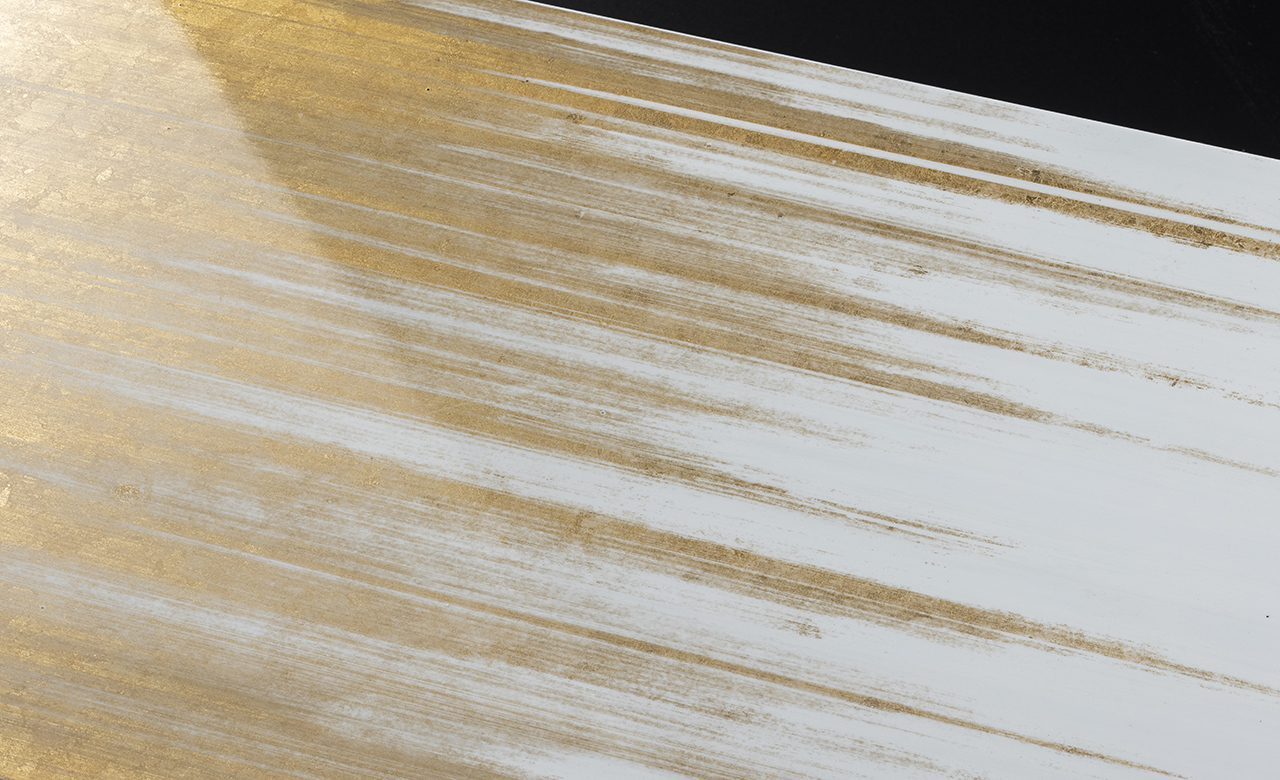 シャギー加工を施し、エレガントでシャープな印象の個性際立つ美しいデザインに仕上げています。見る角度によって、箔の光沢や色が微妙に変化して見えるため、様々な表情を楽しめるのも魅力です。