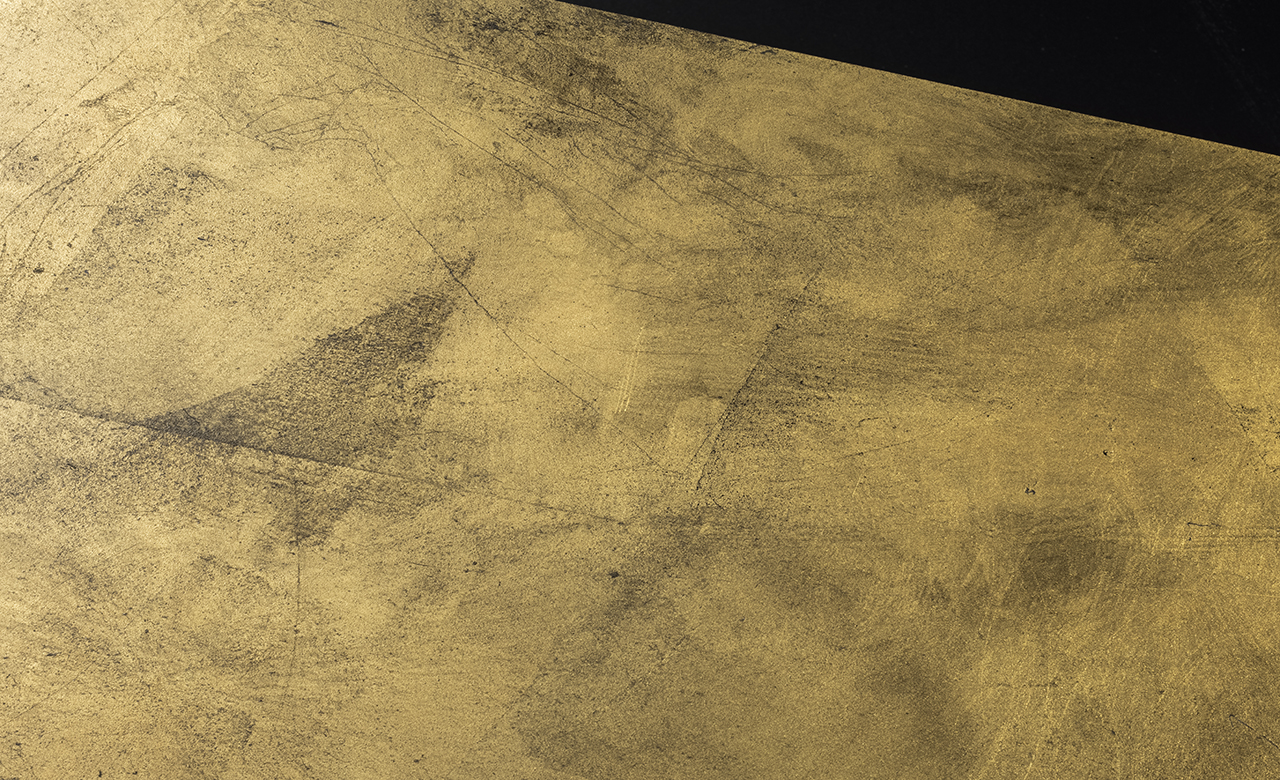 箔の特性であるシワ感を活かし特殊なエージング加工を施すことで、和紙の繊維を思わせる繊細な表情を引き出し、ノスタルジックな雰囲気を創り出しています。表面をマットに仕上げることで、和紙のような風合いをより引き立たせています。