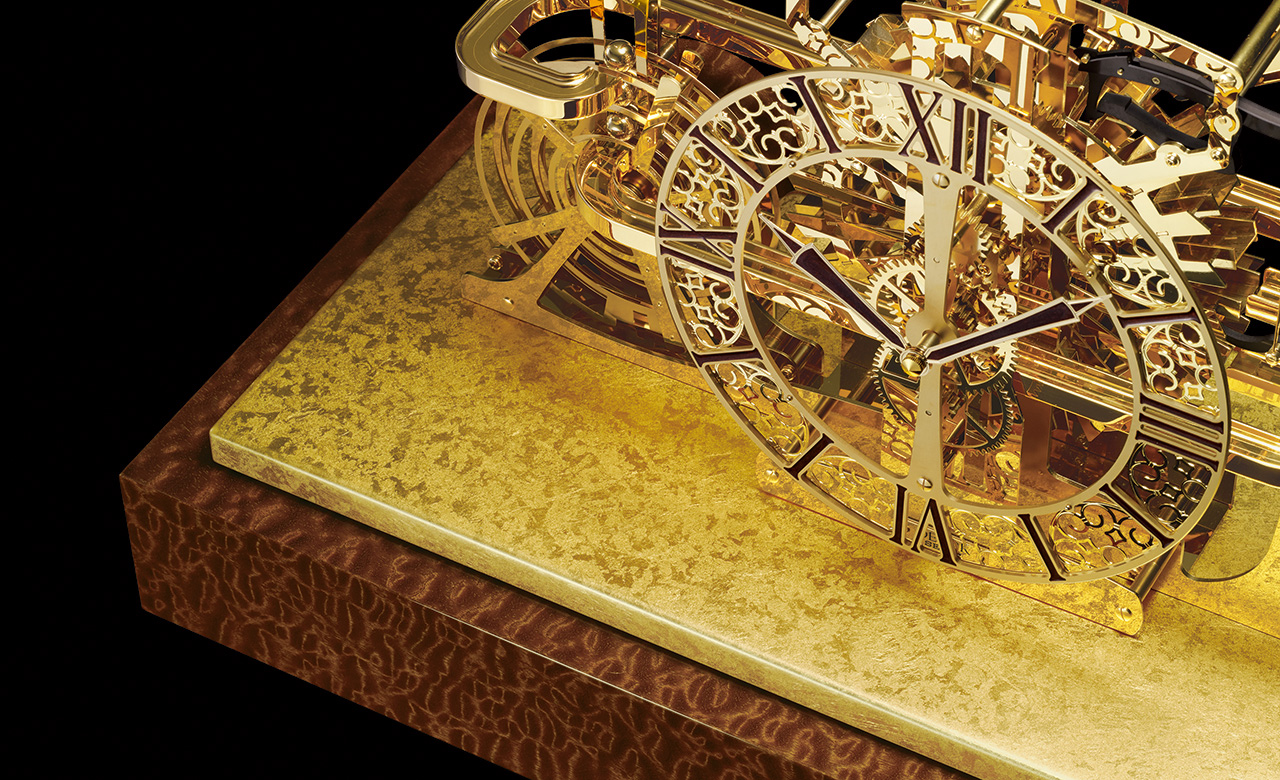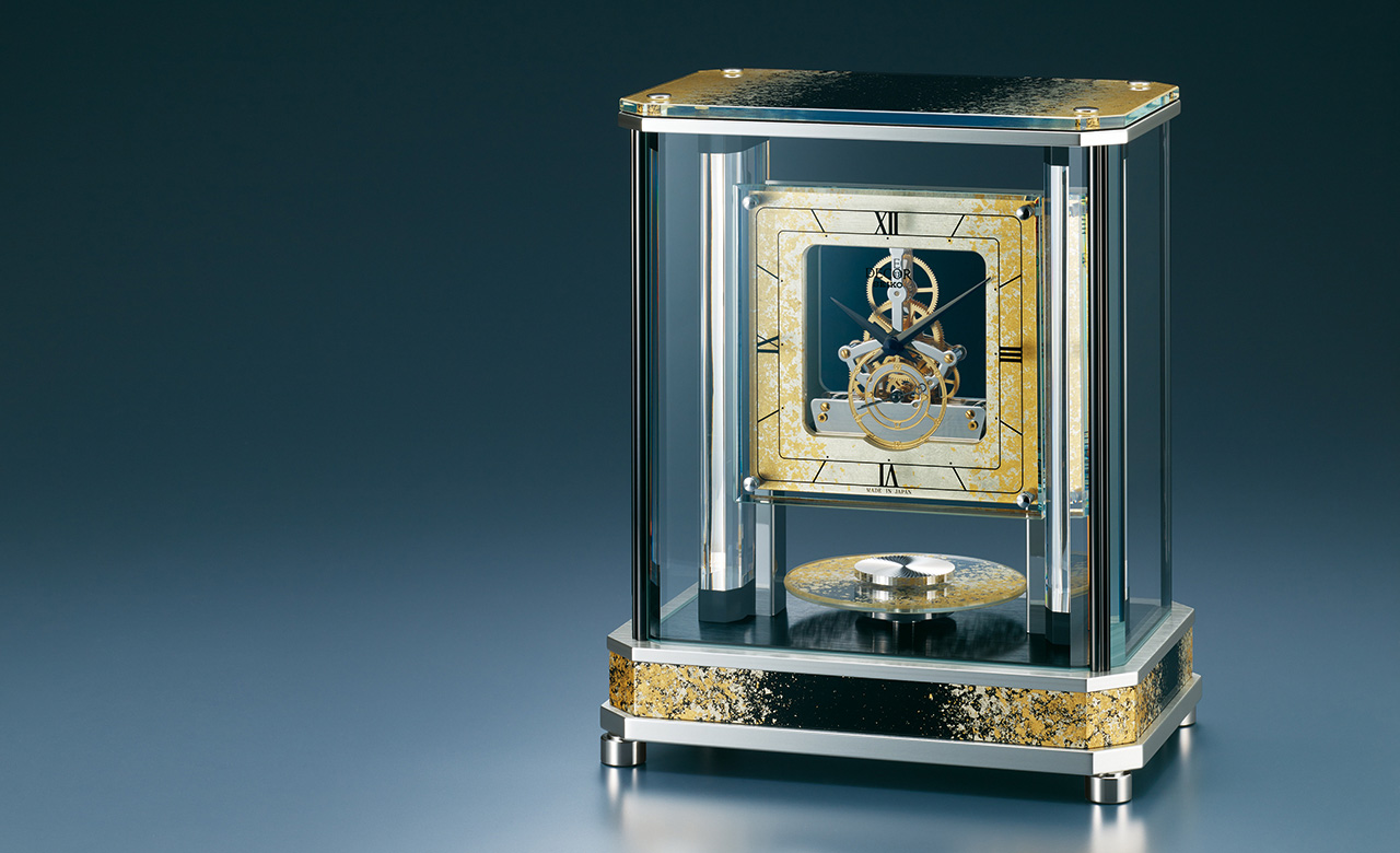 材枠に用いる素材の吟味から独自の演出や最後の仕上げに至るまで、緻密で美しい時計の魅力を存分に表現したクロックの最高級ブランドに、箔一の箔装飾が採用されました。金沢の伝統的な職人技によって、優雅に時を刻む最高級の置時計がいっそう華やかに演出されています。
