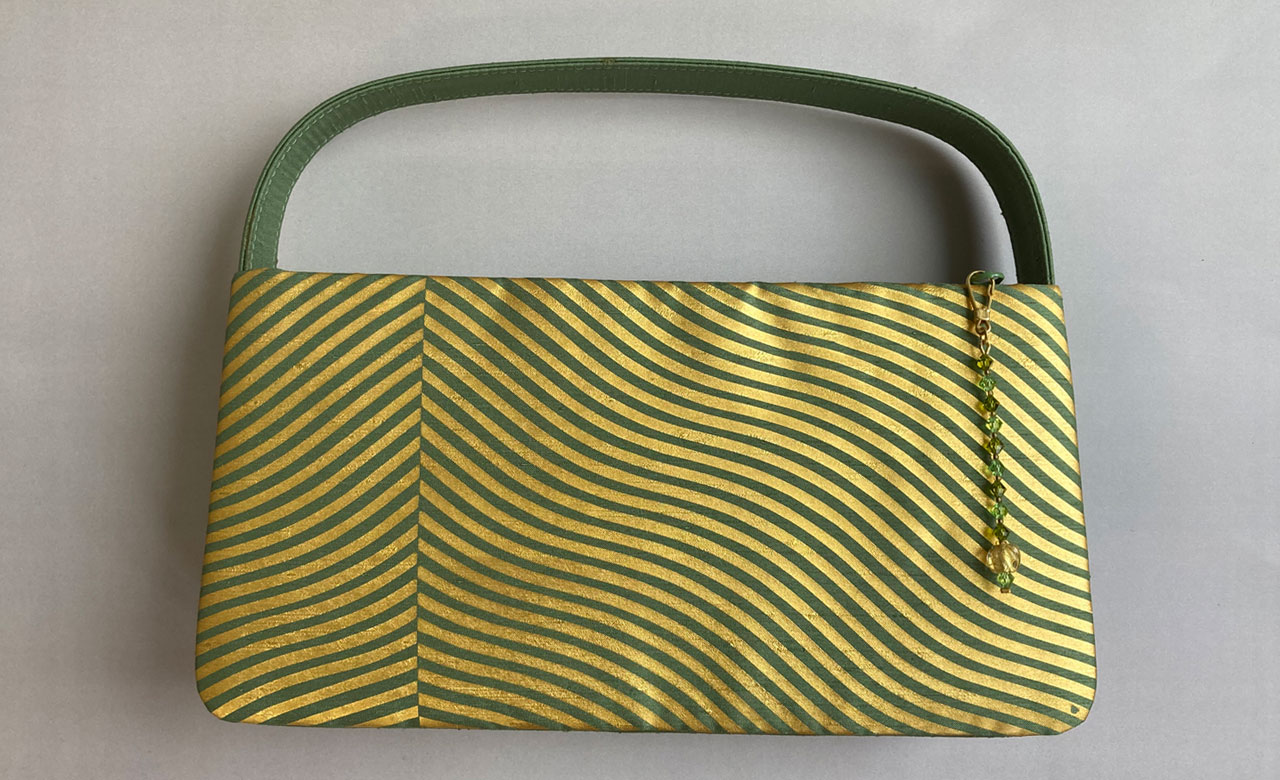 人形の次に挑んだものは、ファッション性のある箔布でした。人形でも大変に難易度の高い素材ですが、洋服やバッグのような持ち歩くものになると、さらなる強度が求められます。洋服であれば、洗濯という大きな問題も生じてきます。多少の伸び縮みで箔が割れないことはもちろん、箔が動いても美しく見える加工方法なども開発しました。その後、箔のデザインと合わせた装飾性の高いバッグや、箔にエイジング加工を施した新しいファッションのデザインなども生み出しました。これらは高く評価され、「ものづくり日本大賞」において優秀賞も受賞しています。
