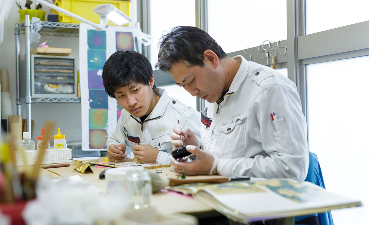 かつて伝統技術の継承は、徒弟制度のような慣習のなかで行われていました。長く苦しい修業時代を耐えてようやく技術を教えてもらえる。それが当然とされてきたのです。私たちは、こうした慣習をいち早く改め、若い職人を正社員として雇用し、安定した環境のなかで技術の伝承をすすめています。腕一本で生きていく職人たちであっても、日々の生活の安定の中でこそ、高い技術を身に着けられるのです。