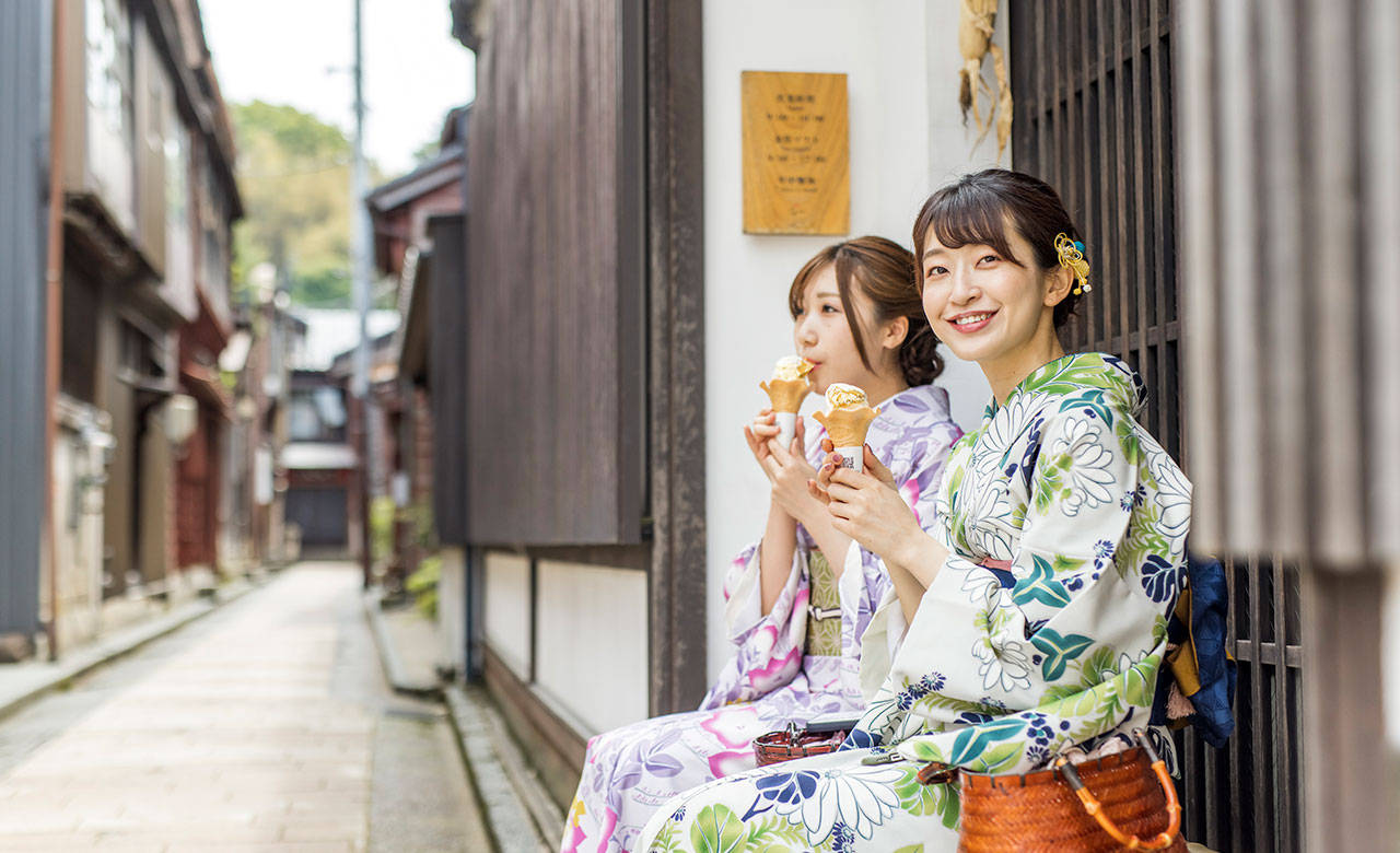 ひがし茶屋街や金沢城・兼六園など、風情を感じる場所に店を構えています。名所をそぞろ歩きし、工芸に触れることで、歴史と伝統を実感いただけるでしょう。