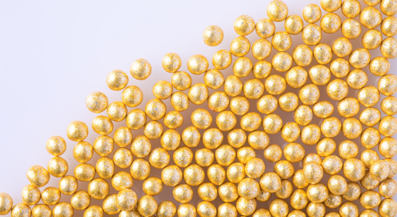 このイエローゴールドの最大の魅力はコストパフォーマンスです。銀箔ベースのため、本金箔のアラザンのおよそ1/10の価格を実現しています。また、金は大変に希少な資源ですが、銀は比較的多く埋蔵されていることから、希少資源を守りサステナブルにも配慮をした商品となっています。
