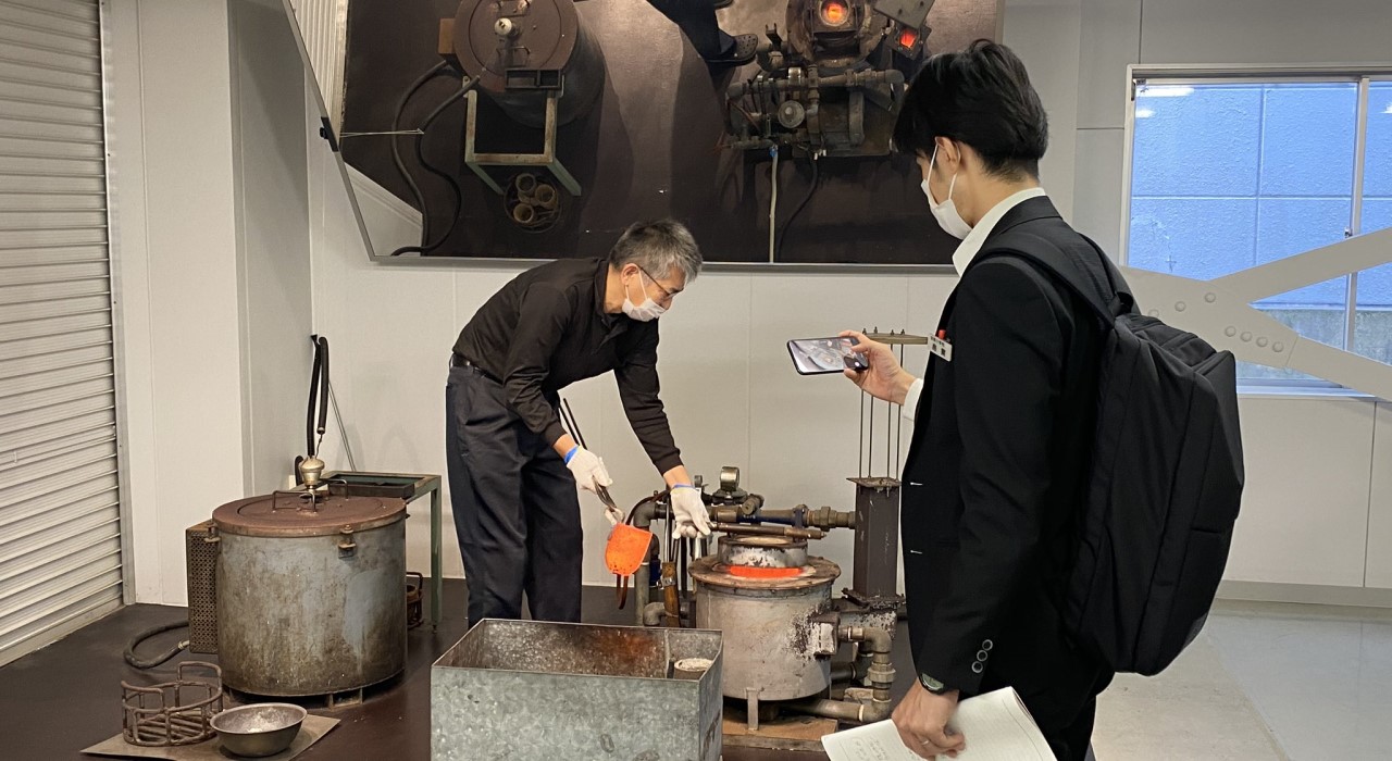 箔一では、次世代を担う子供たちに金沢箔を知ってもらうために、教育現場への資料提供に積極的に応じています。箔づくりの様子を撮影した写真や動画の提供のほか、地元小中学校の先生に箔づくりを紹介し、授業で活用していただいています。修学旅行の受け入れも多く、多くの子供たちに箔の素晴らしさを伝えています。