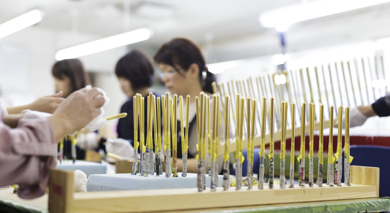箔一のスタッフは、自分たちの意思で社員、アルバイト、パートといった働き方を選べます。 特にパートの方々は、業務推進の主力にもなっています。箔一のパートさんの特徴は、長く勤める方が多く、非常にスキルが高いことです。箔の事や、人事の事、また箔一の古い歴史のことなど、パートさんに聞くことで若い社員が勉強することも、少なくありません。