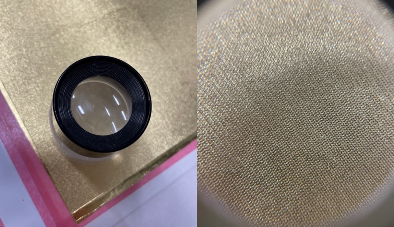 この作品への箔押しは、箔一が長年研究し、蓄積してきた伝統的な技術の結晶といえます。
