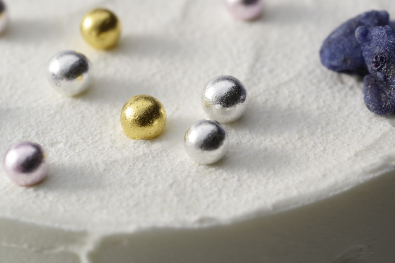 そうした傾向のなかで、小ぶりなケーキを格上げできる商材として、金銀箔のトッピング材に注目が集まりました。