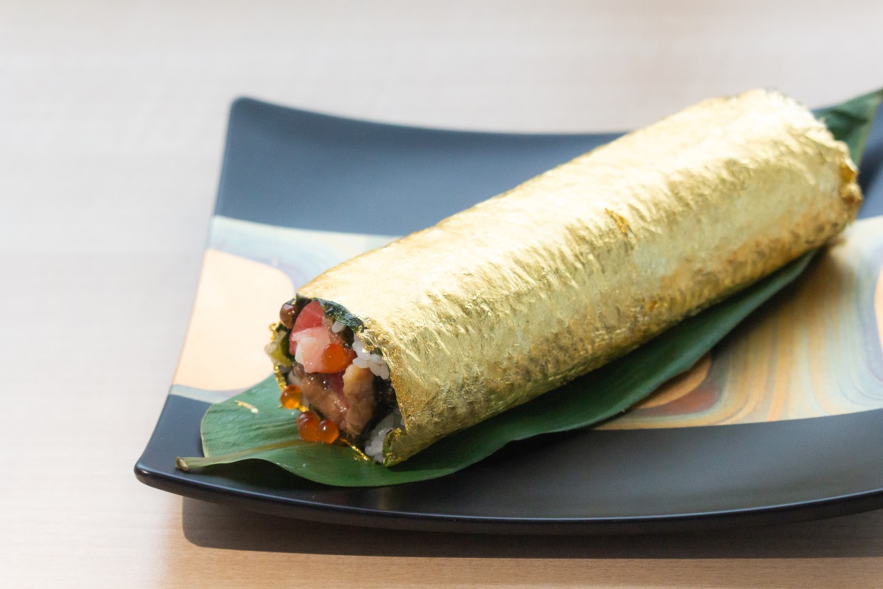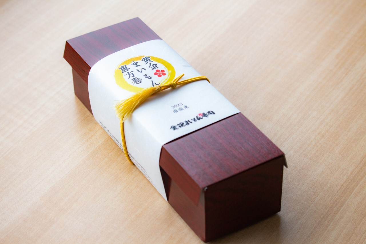 その『金沢まいもん寿司』で、この冬、ひときわ目を引いたのが金箔の恵方巻でした。まさに雅やかな文化の極みのような豪華な仕様は、縁起物として評判を呼び、自宅用や贈答品として人気を博しました。